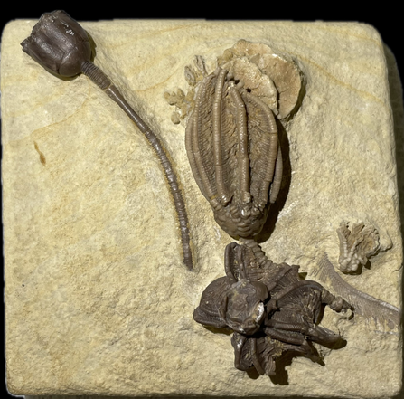 1. (Crinoid) Dasciocrinus florialis 2. (Crinoid) Wetherbyocrinus pulaskiensis 3. (Crinoid) Onychocrinus pulaskiensis 4. (Crinoid) Pterotocrinus rugosus 5. (Blastoid) Pentremites sp.
